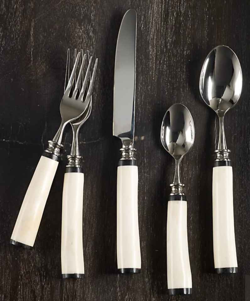 2024 Stainless Steel Bone Handle Flatware Wedding Spoon From India and Metal Fork Mirrored Steel Flatware Kitchen Knives Set