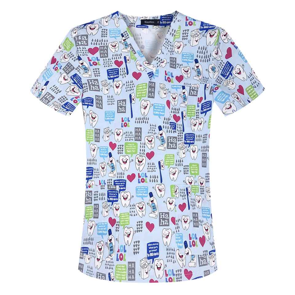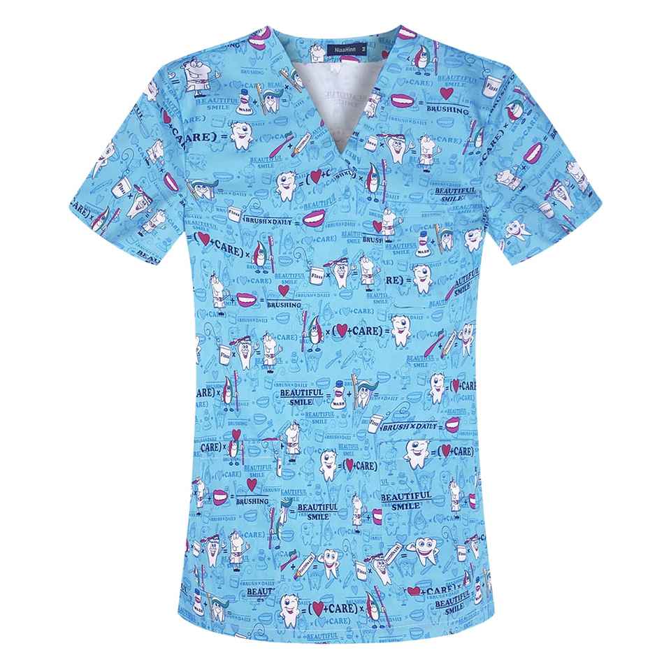 2024 Summer Breathable Women's Printed Scrub Tops Casual Nursing Tee Shirts with Short Sleeve Loose Fit Hospital Uniforms