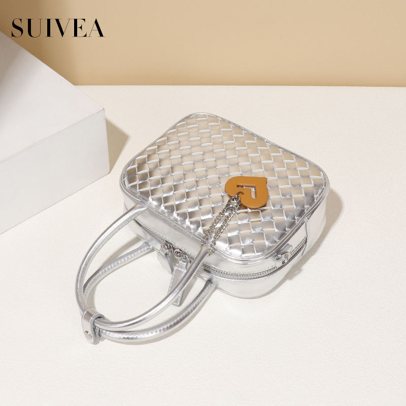 2024 Summer New Fashion Ladies Handmade Weaving Bag Simple Europe and the United States Diamond Bowling Handbag Crossbody Bag