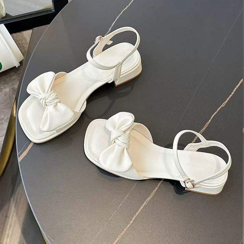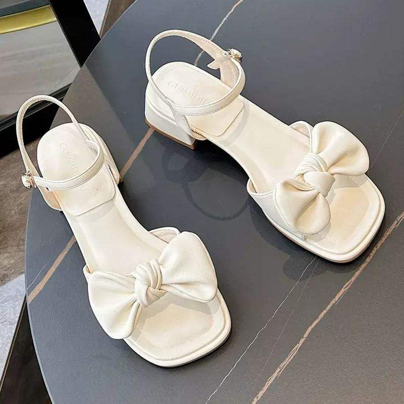 2024 Summer Women's Fairy-Style Sandals with Skirts All-Match High Heels with Bows Weddings Casual Use Wedge Heel Wedding Shoes