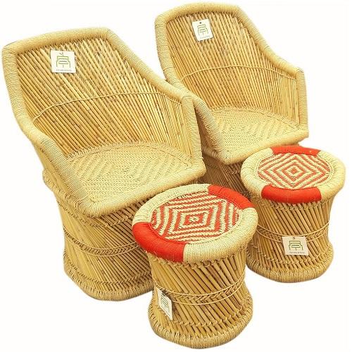 Chairs 18x18x34 (lxbxh), 2 Stools : 14x14x16 (hxlxb) in inches