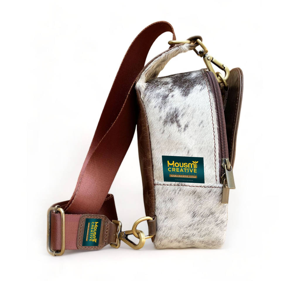 2024 Top Trending Unisex Chest Pack Natural Cowhide Hair on Leather Crossbody Sling Bag OEM Messenger Chest Bag for Men & Women