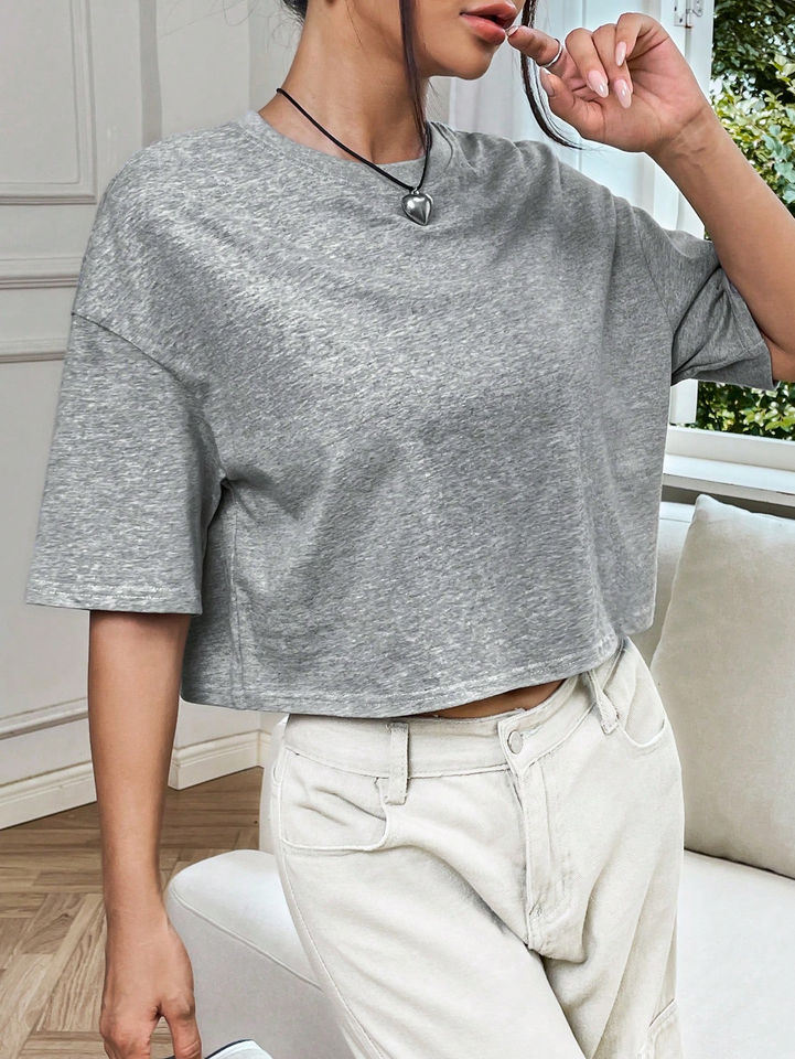 2024 Women's Cropped T-Shirt Crew Neck Drop Shoulder 100% Cotton Loose Fit High Quality Fully Customizable Quick Dry Breathable