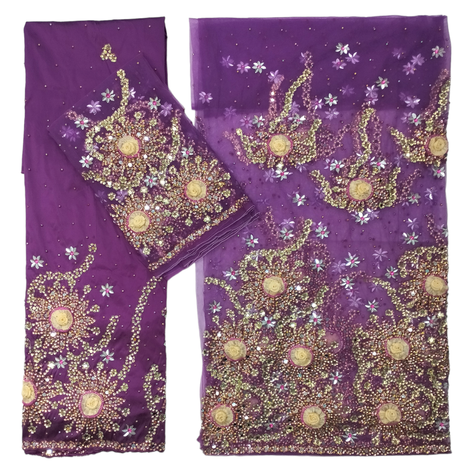 2024 Trending Mirror Hand Work Nigerian Wedding Net Lace Dress Heavy Sequins Beaded George Wrapper Traditional Lace Blouse