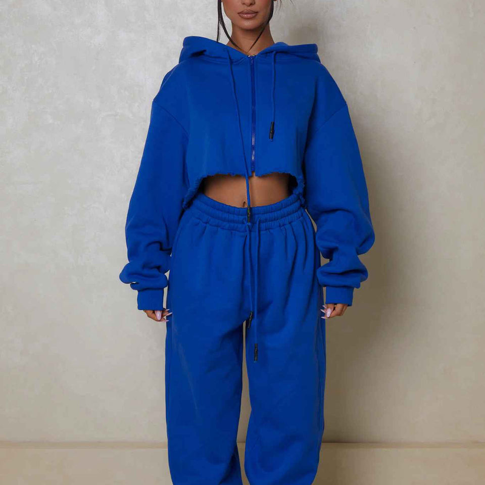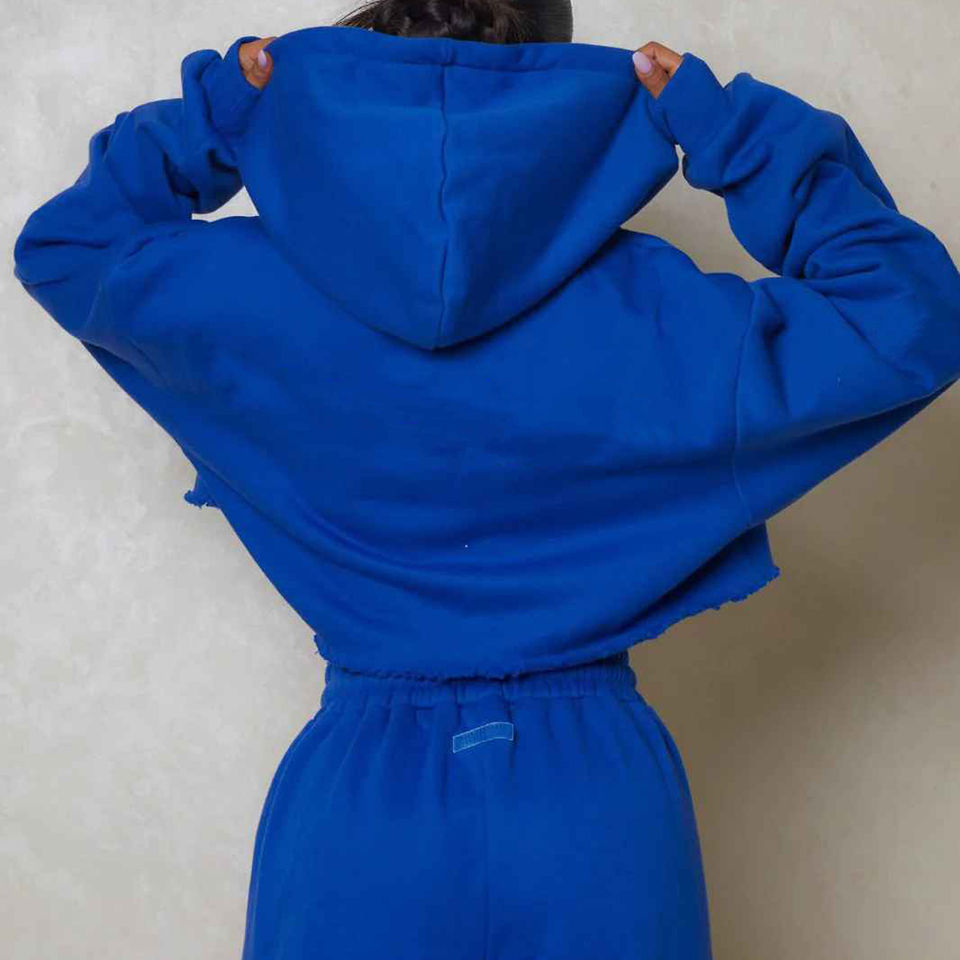 2024 Trendy Cropped Zipper Hoodie Drop Shoulder Oversized Women Cropped Zip up Hoody Sweat Shirt With Hoody
