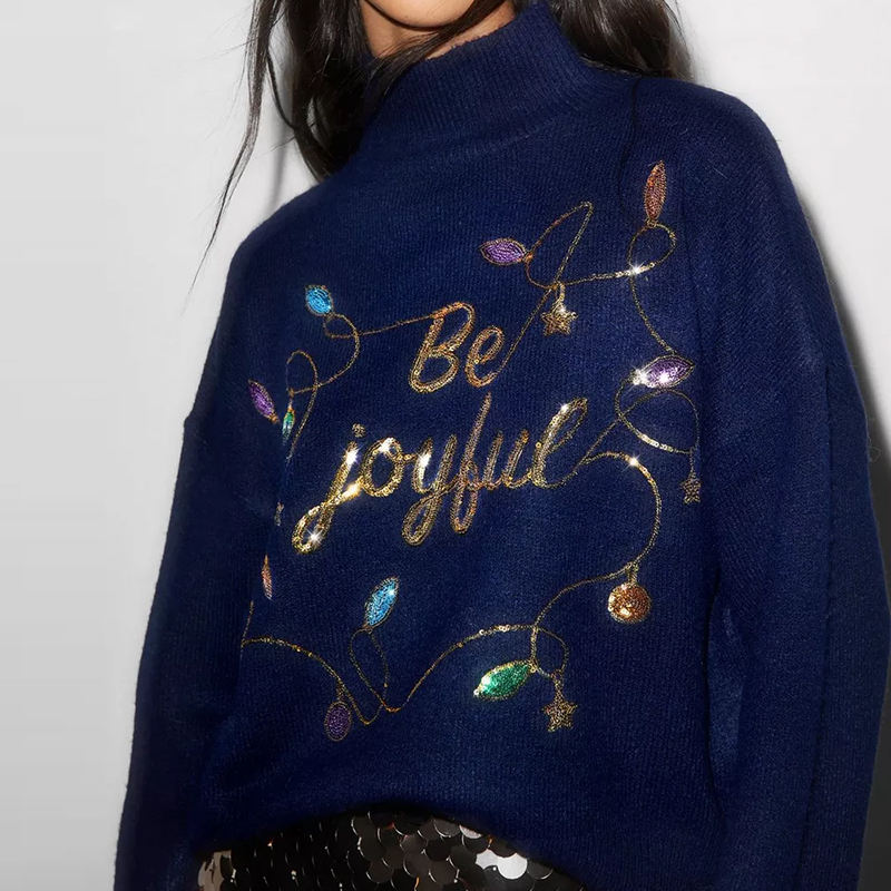 2024 Turtleneck Sequined Christmas Sweater Y2K Cute Holiday Slogan Christmas Knitwear Vintage Lights Christmas Jumper