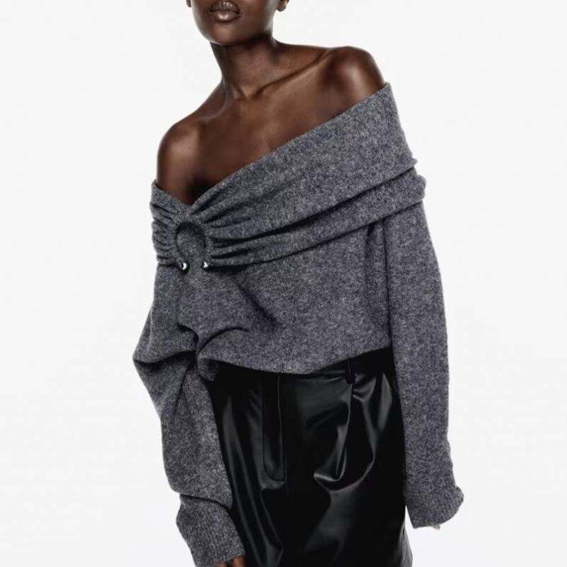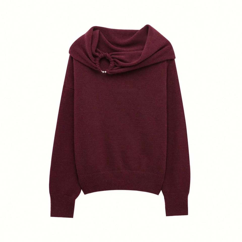 2024 Vintage Women's Fashion Long-Sleeved Ruched Breathable Anti-Pilling 100% Polyester Sweater Top Simple Casual Style for