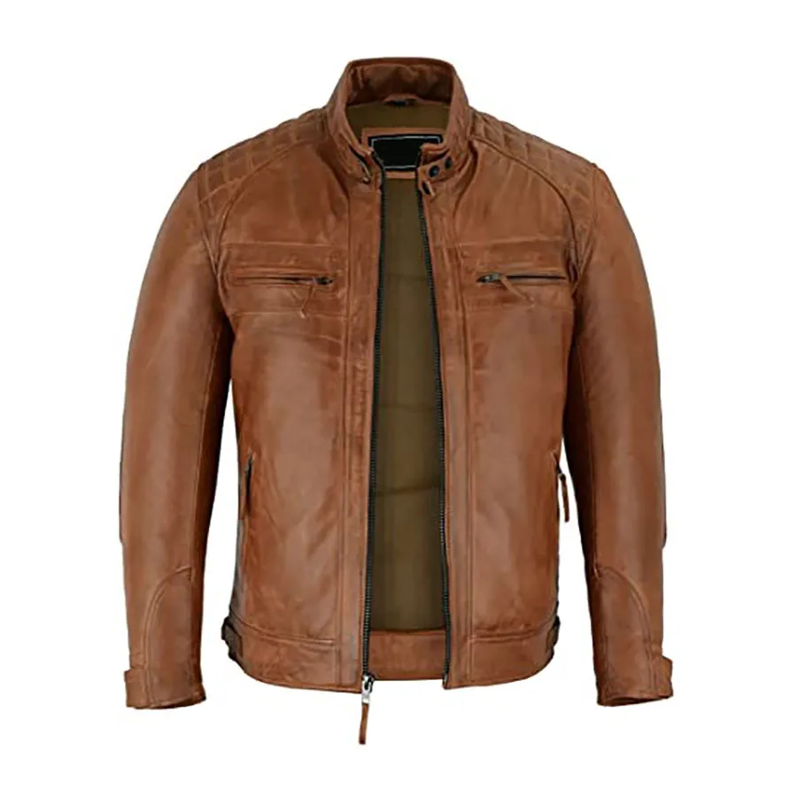 2024 Wholesale Blue Customizable Leather Motorcycle Jacket Windproof & Warm Plus Size Men's Jackets Leather Jacket Men