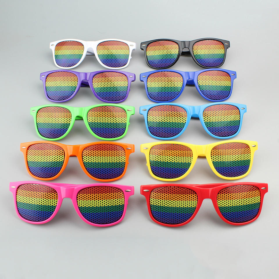 2024 Custom Logo Printed Sunflower Fashion Sunglasses Blue Pinhole Rainbow PC Plastic Yellow Purple Pink Hot Sale for Party