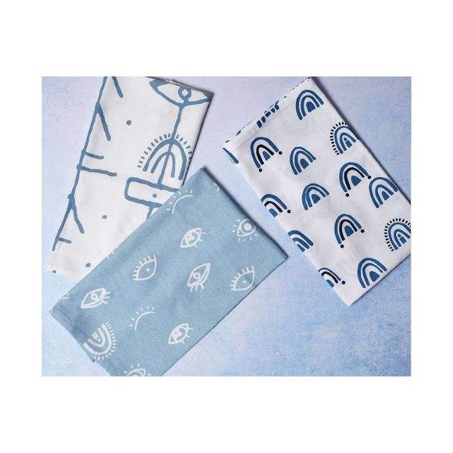 2024 Wholesale Customized Evil Eye Hand Printed Blue Embroidered Reusable Sustainable Durable 100% Organic Cotton Animal Print