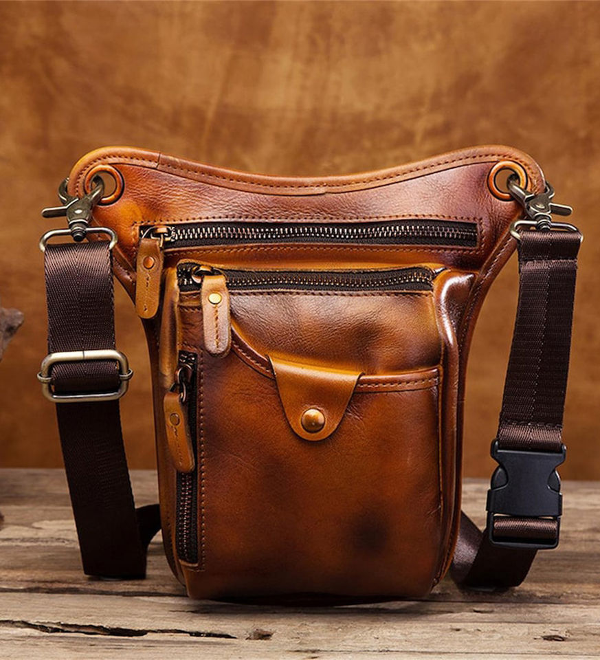 2024 Wholesale High Quality Fancy Leather Leg Bag Men and Women Fanny Pack Drop Shoulder Leg Bag Motorcycle Waist Bag Thigh Pack