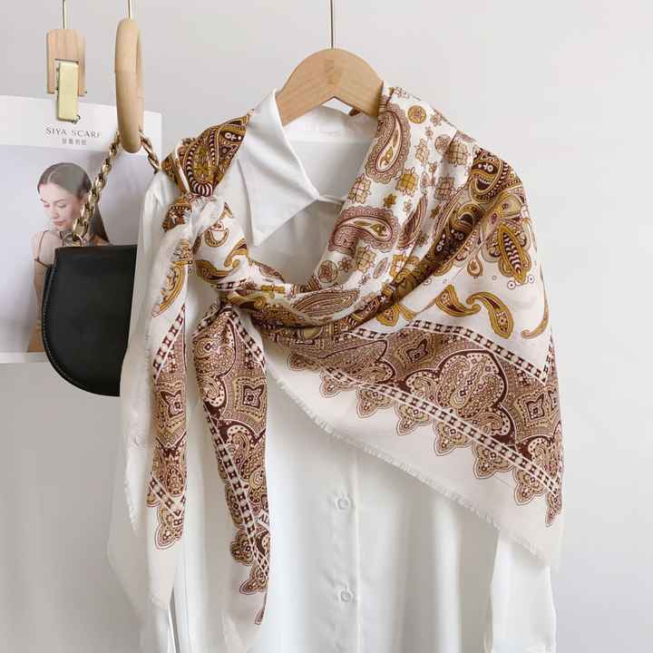 2024 Wholesale New 130x130cm Polyester Cotton Scarf for Women Hijab Muslim Printed Thin Shawl