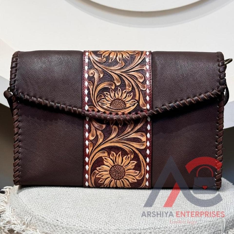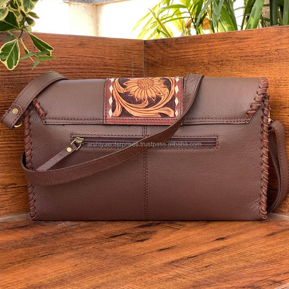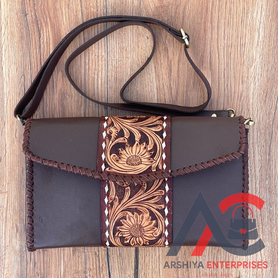 2024 Wholesale New Western Bohemian Floral Cow Leather Crossbody Bag Women's Designer Purse Hand Tooled Genuine Leather Logo