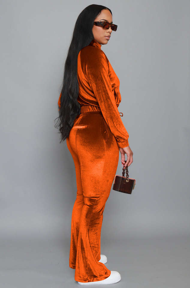 2024 Wholesale Trendy Velvet Jacket Flare Pant Two Piece Set Custom Velour Jogger Sweatsuit 2 Piece Outfit for Women Winter