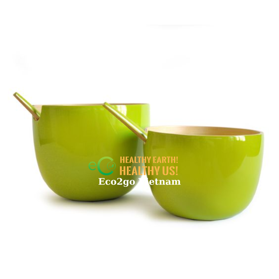 2025!!! Wholesale Eco2go Natural Bamboo Bowl Spoon Set Modern Design Round Bamboo Salad Bowl for Home Party Wedding PC Material