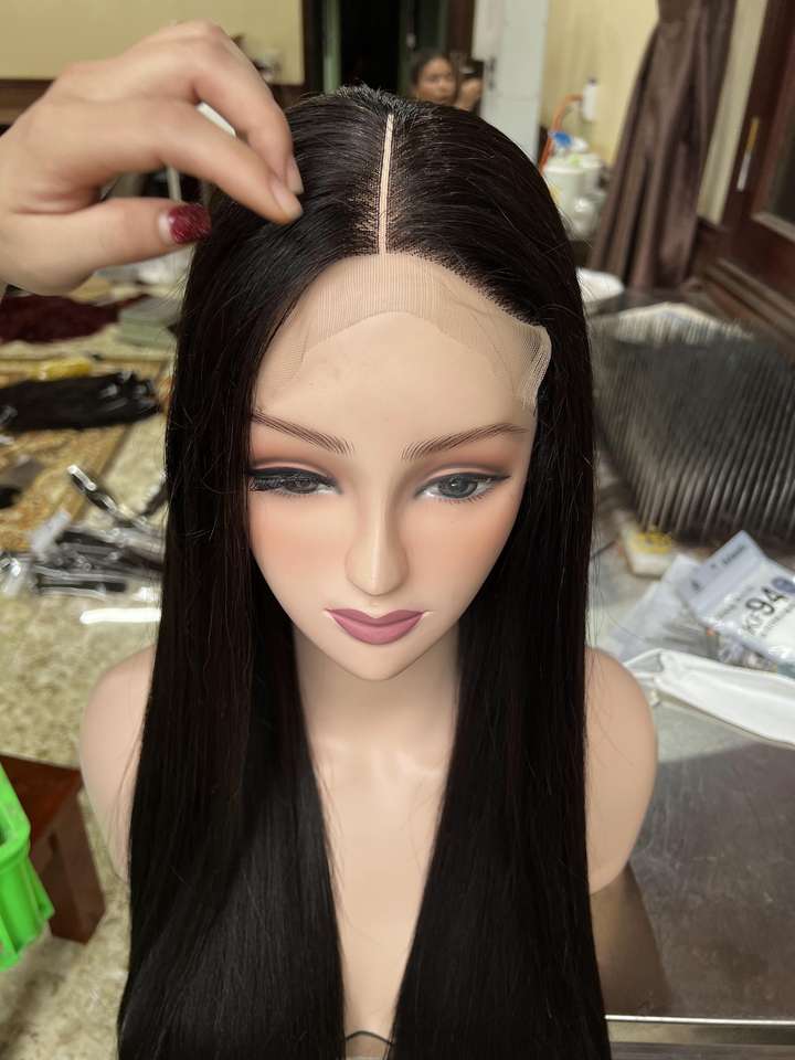 2024 Whosale Raw Vietnamese Human Hair Black Straight Glueless Full HD Transparent Front Wigs Training Heads Black Women