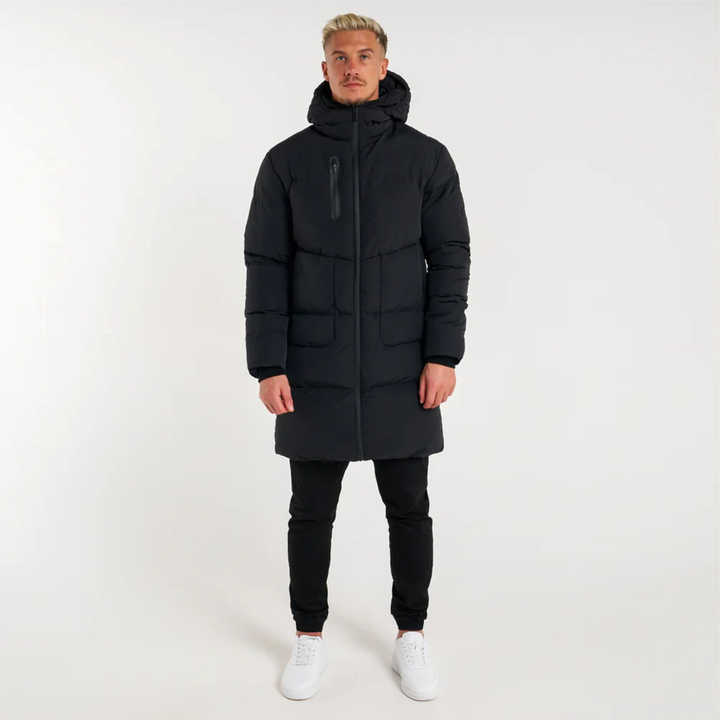 2024 Winter Fashion Stylish Down Coat for Men Custom Logo Design Coaches Jacket with Stand Collar and Hood Made of Canvas
