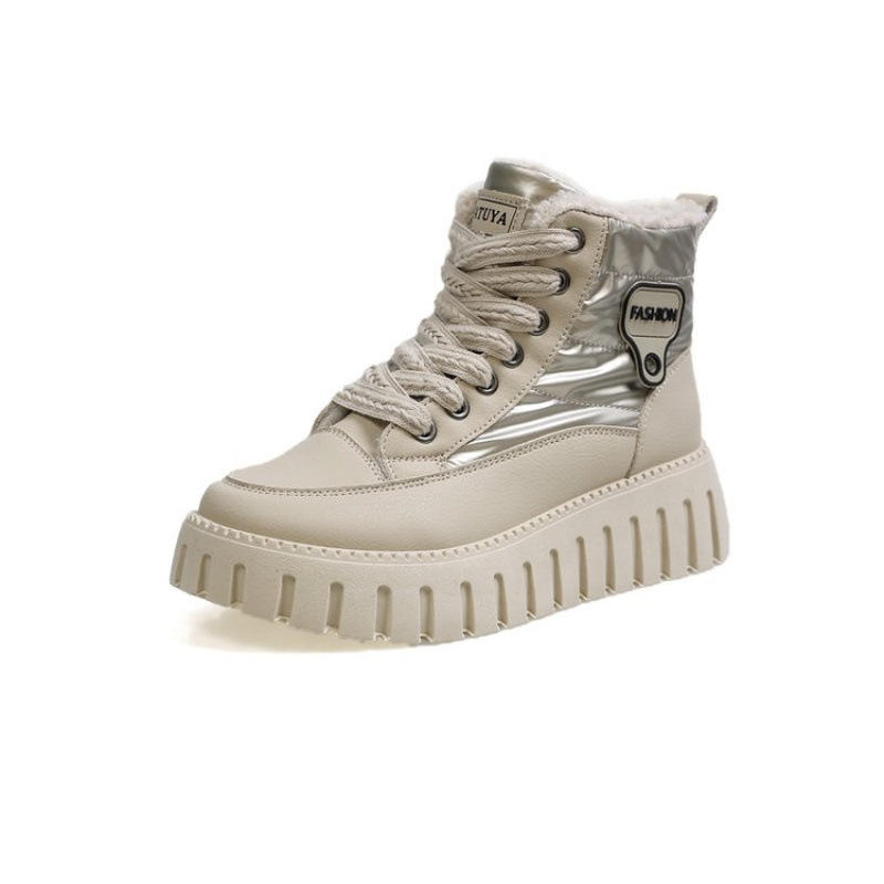 2024 Winter New Style Women's Thick-Soled Snow Boots Waterproof Non-Slip High-Top Warm Cotton Shoes Velvet Thickening Khaki/Blue