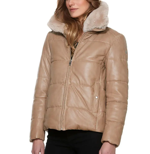 2024 Winter Solid Women Crop Puffer Down Bomber Leather Jacket New Breathable Fabric Jacket Trending Fashion