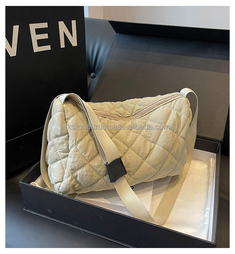 2024 Autumn Winter Trend Soft Nylon Puffy Tote Handbag Large Capacity Water Resistant Anti-Theft Fashionable Custom Daily
