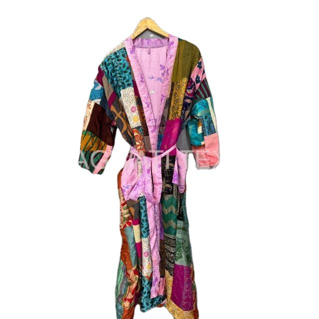 2024 Women Kimono Cardigan Floral Printed Long Sleeve Beach Cover up Long Silk Kimono Robes Patchwork Silk Kimono