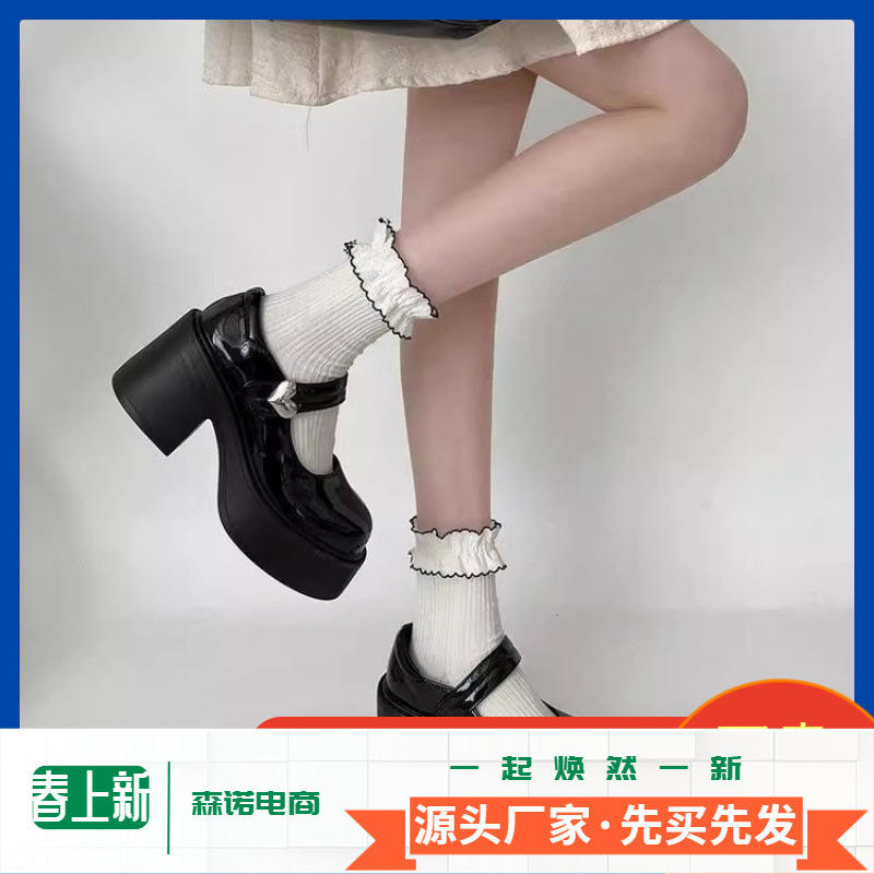 2024 Women's Black French Leather Mary Jane Pumps All-Match High-Heeled Thick-Sole New Autumn Winter Collection Shallow-Mouth