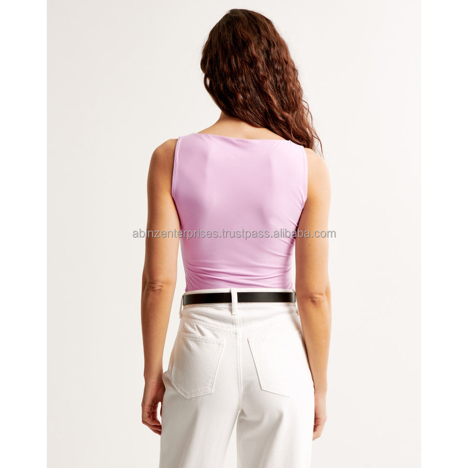 2024 Women's Hot Custom Logo Summer Tank Top Soft Matte Seamless Slash Top with Ribbon Decoration Short Length