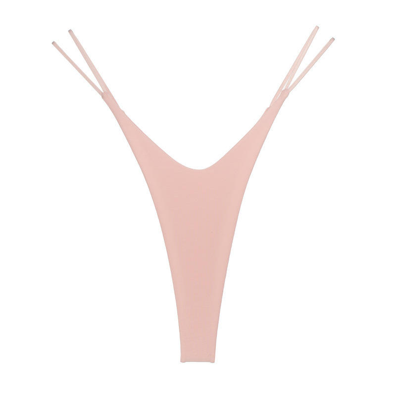 2024 Women's Sexy Bikini Thong Low-Rise Elastic G String Double Straps Solid Color Waist Cotton Spandex Plain Dyed Techniques
