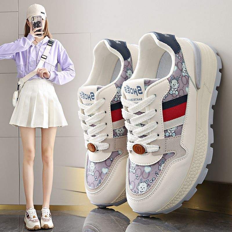 2024 Women's White Forrest Gump Platform Skateboarding Shoes Spring Autumn Fashion Lightweight Casual Sports Thick Sole