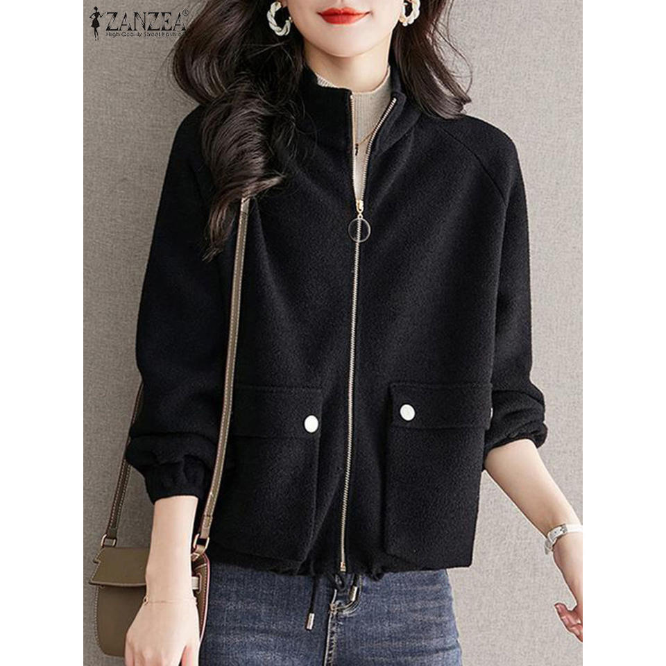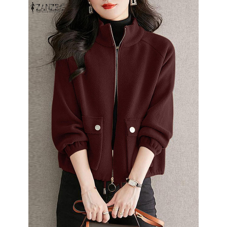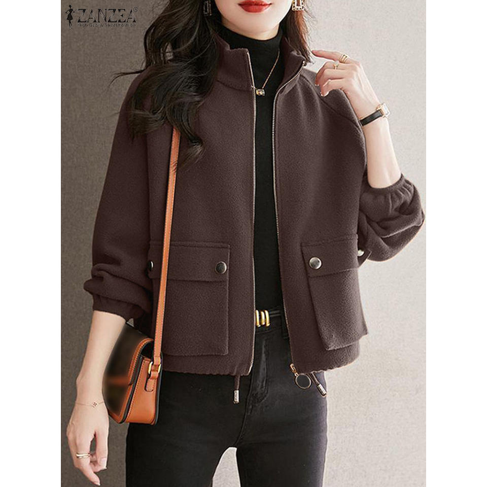 2024 ZANZEA Women Vintage Fleece Coats Autumn Long Sleeve Zipper Bomber Jackets Fashion Solid Work Outwear Casual Loose Chaqueta