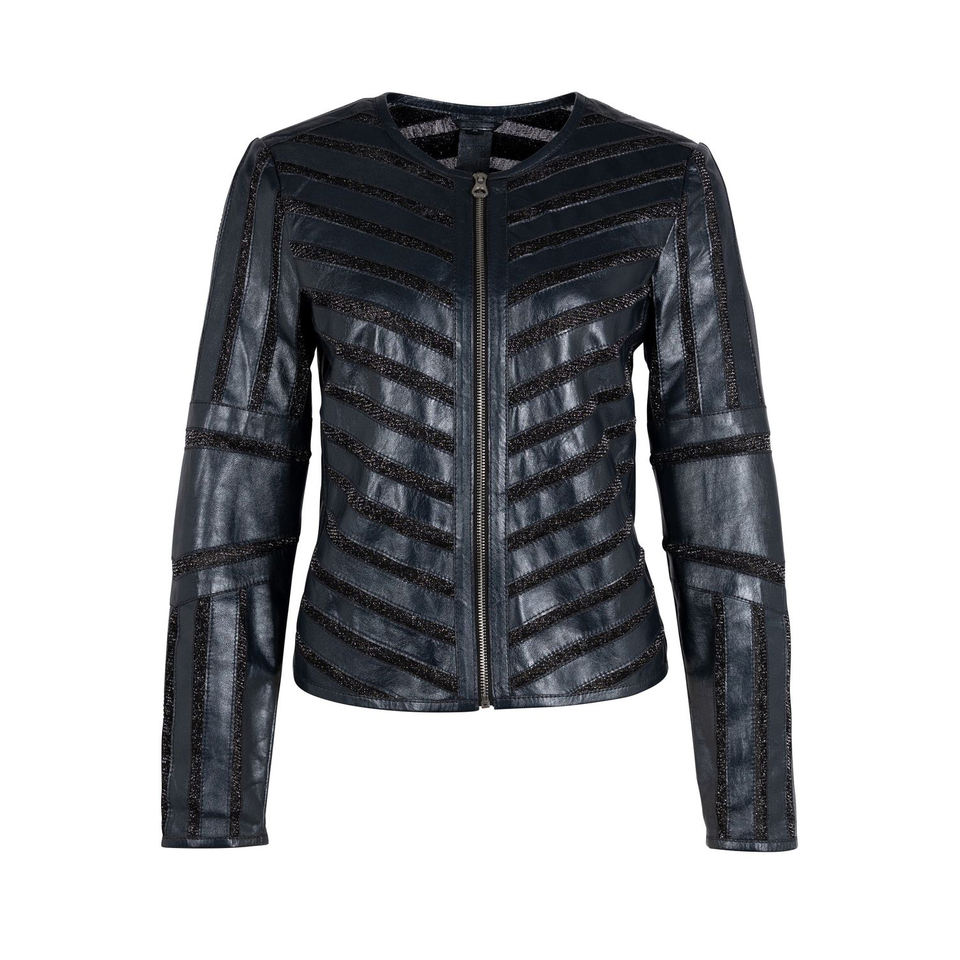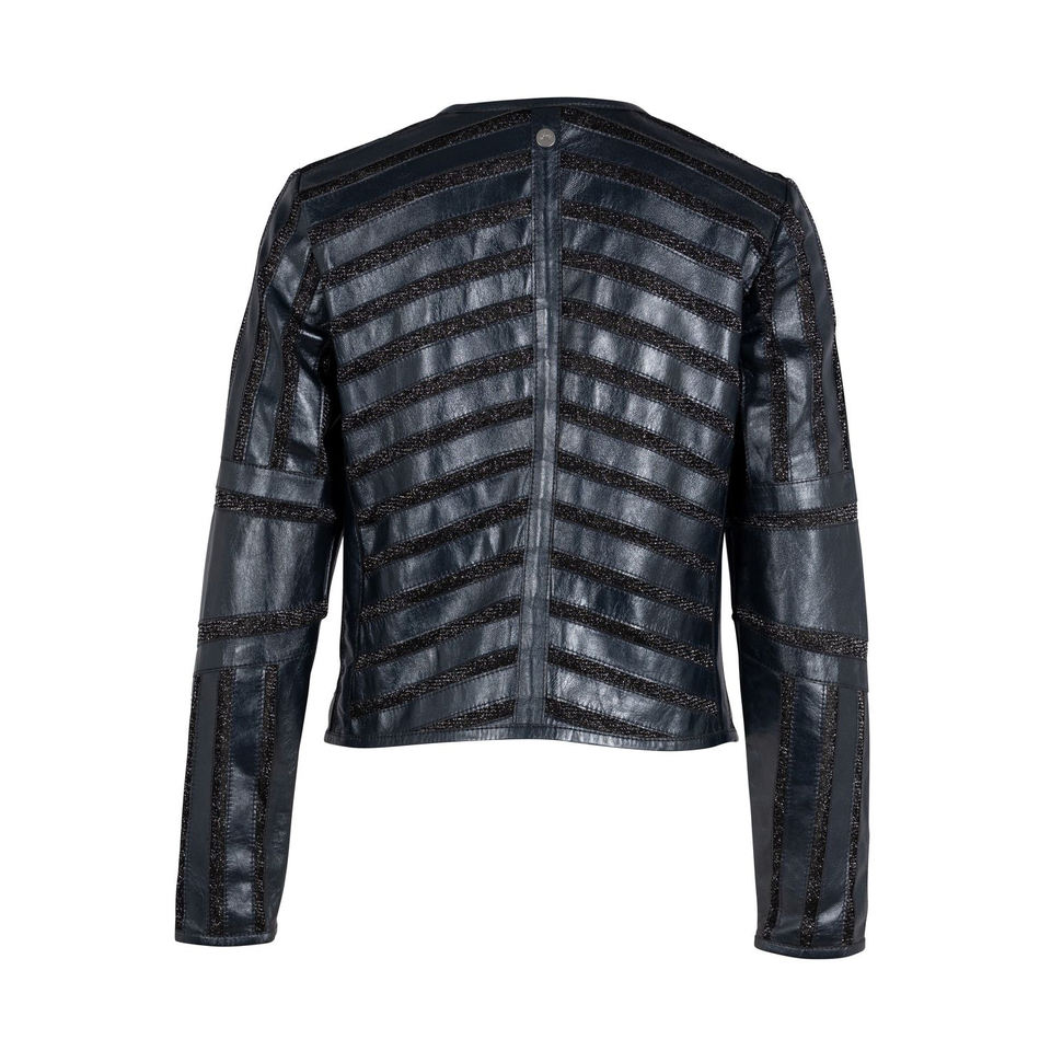 2024 Latest Design High Quality Blue Metallic Women Short Jacket with Zipper Inserts with Glitter 100% Rea Leather Jackets