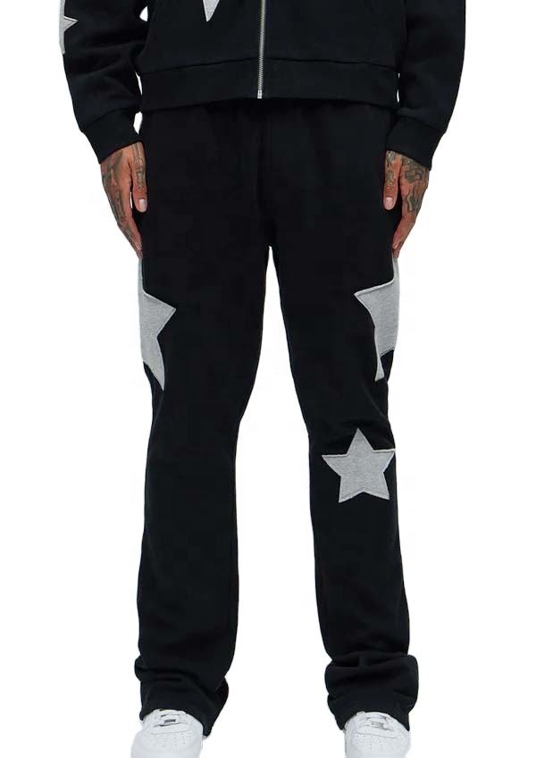 2025 100% Cotton Fleece Two Piece Applique Patch zip up Embroidered Flared Tracksuit Streetwear Oversized Acid Wash Tracksuit