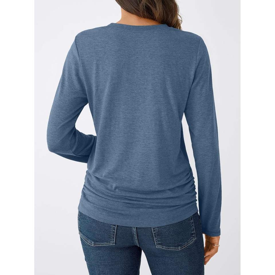 2025 2025 Women's Long Sleeve Crewneck Tops Basic Fall T-Shirt Ruched Design Business Casual Trendy Outfits Size XL Logo