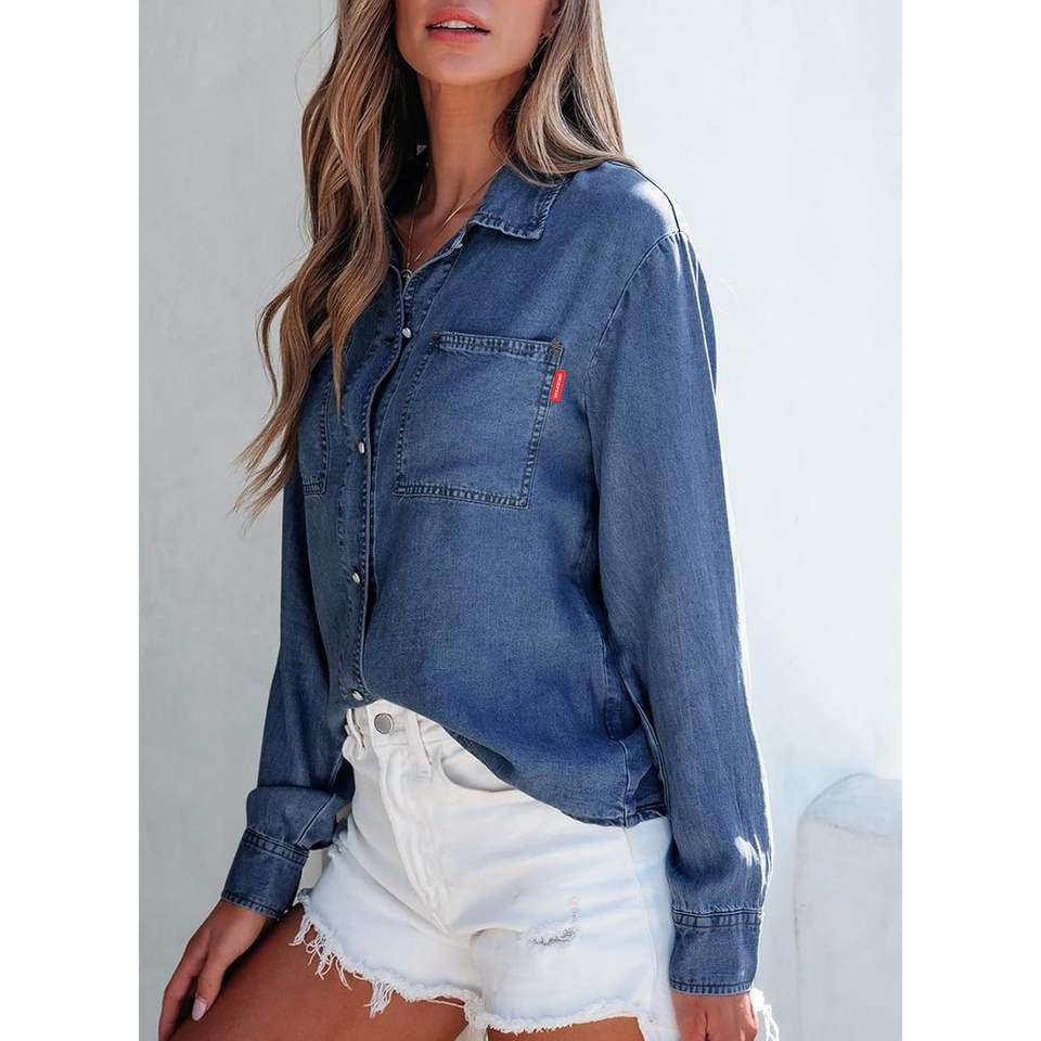 2025 Vintage Chambray Blouse Top for Women Button Down Denim Jean Jacket with Short Sleeves for Summer Outfits