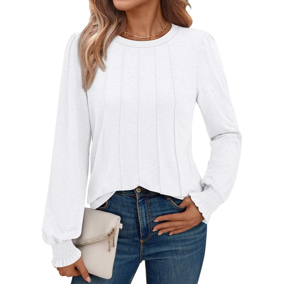 2025 2025 Womens Fall Pleated Tunic Blouses Long Sleeve Satin Dressy Casual Top Trendy Fashion Outfit
