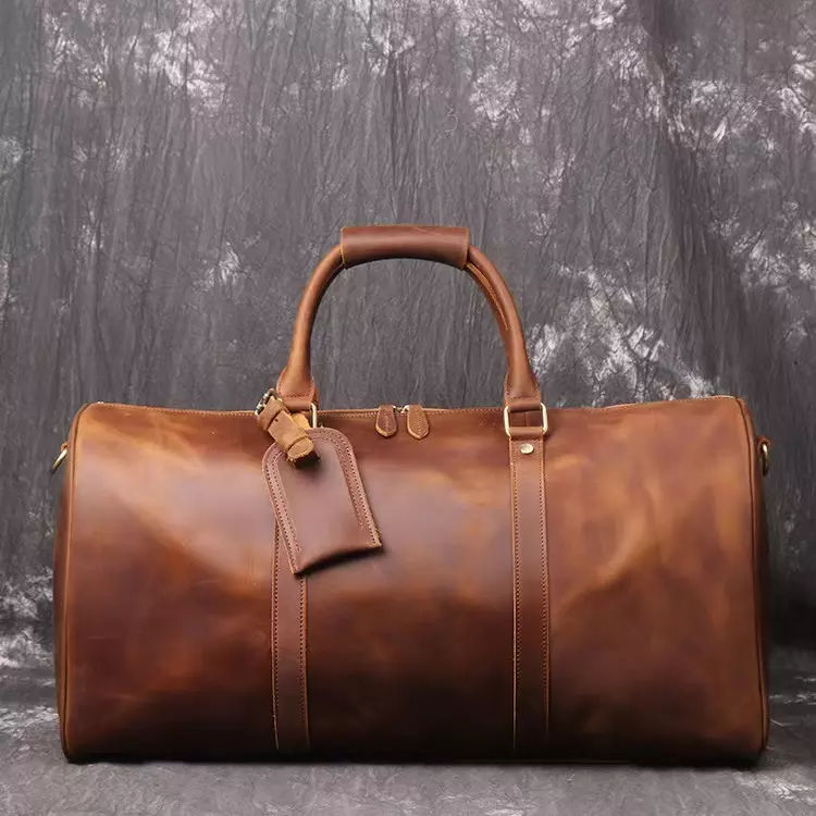2025-26 Luxury Genuine Leather Casual Weekender Travel Duffle Bag with Large Capacity and Lightweight Design