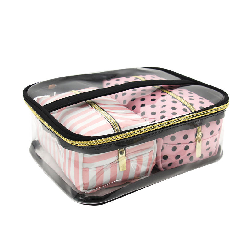 2025 3 in 1 Clear Cosmetic Bag Set Case Travel Toiletry Organizer Bag Case PVC PU Makeup Pouch Handbag Organizer for Women