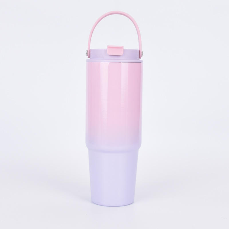 2025 30oz Stainless Steel Vacuum Insulated Eco-Friendly Travel Mug Straw Portable Gradient Design Lid Customizable Logo Print
