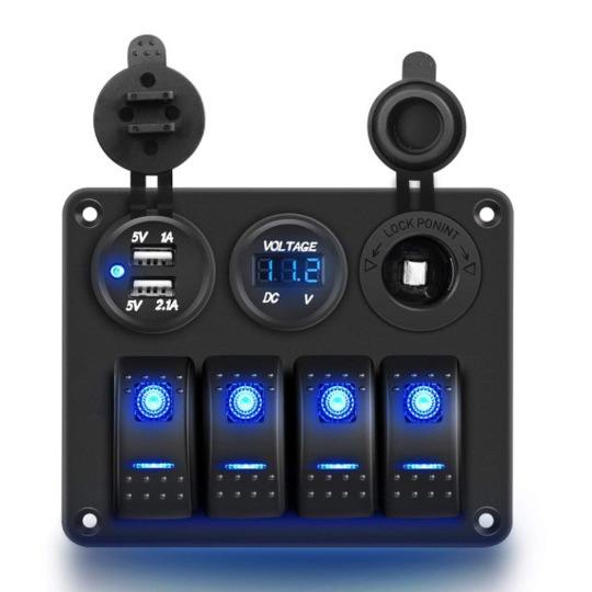 WLETO WLT-L43-1 2025 4-Gang Rocker Switch Panel with Dual USB Port Charger & Voltmeter Display DC 15W Highly Recommended Product