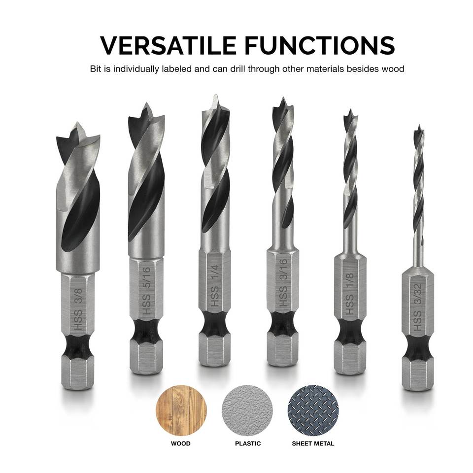 2025 6-piece Brad Point Bit Set Short and Thick Drill Bits