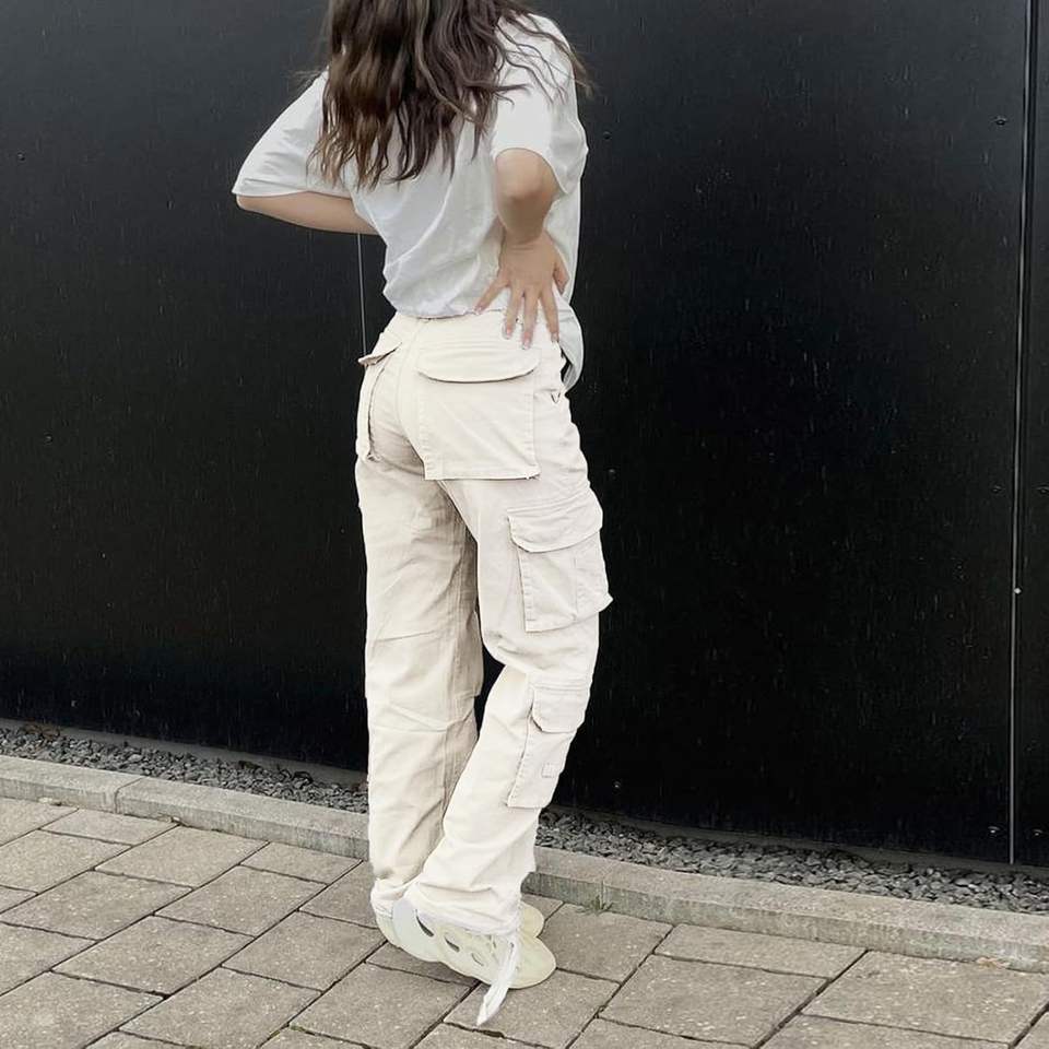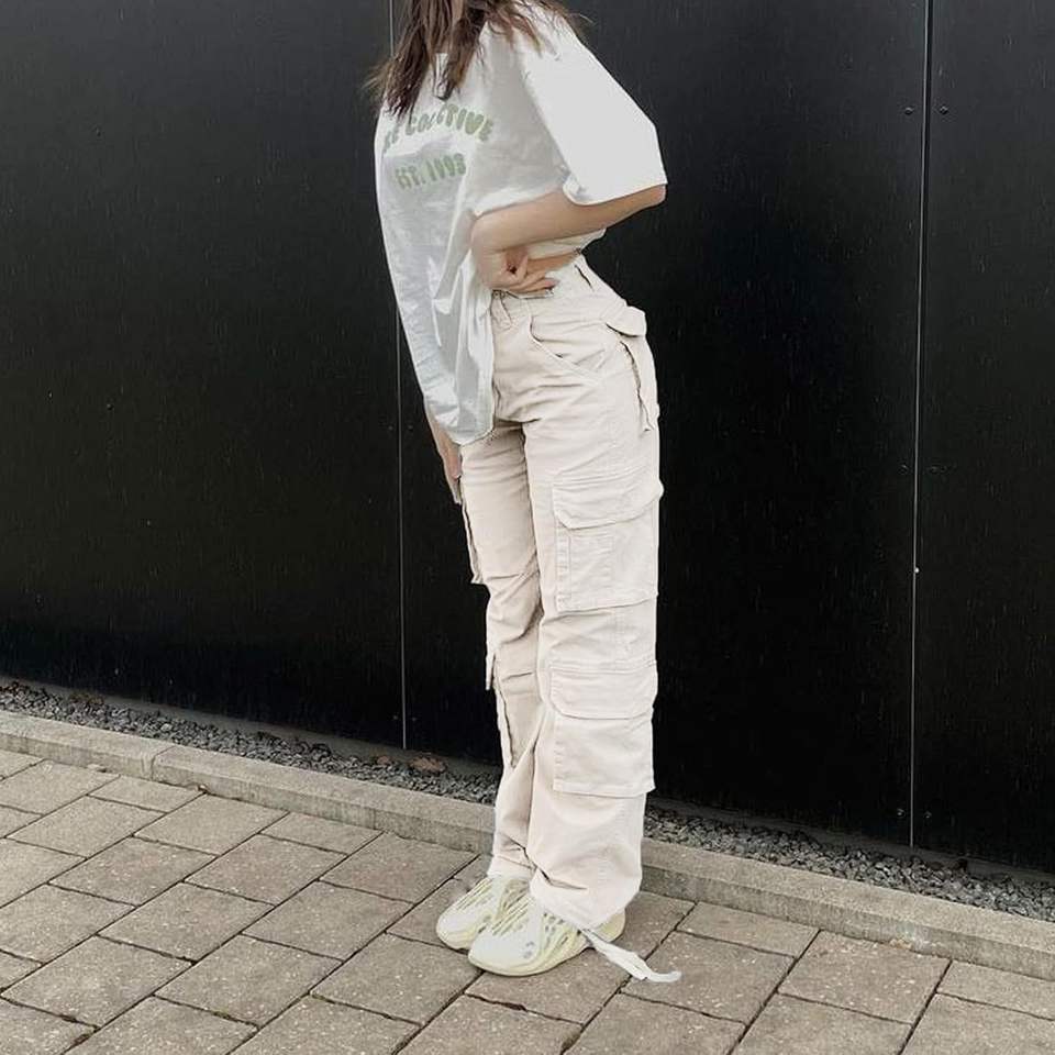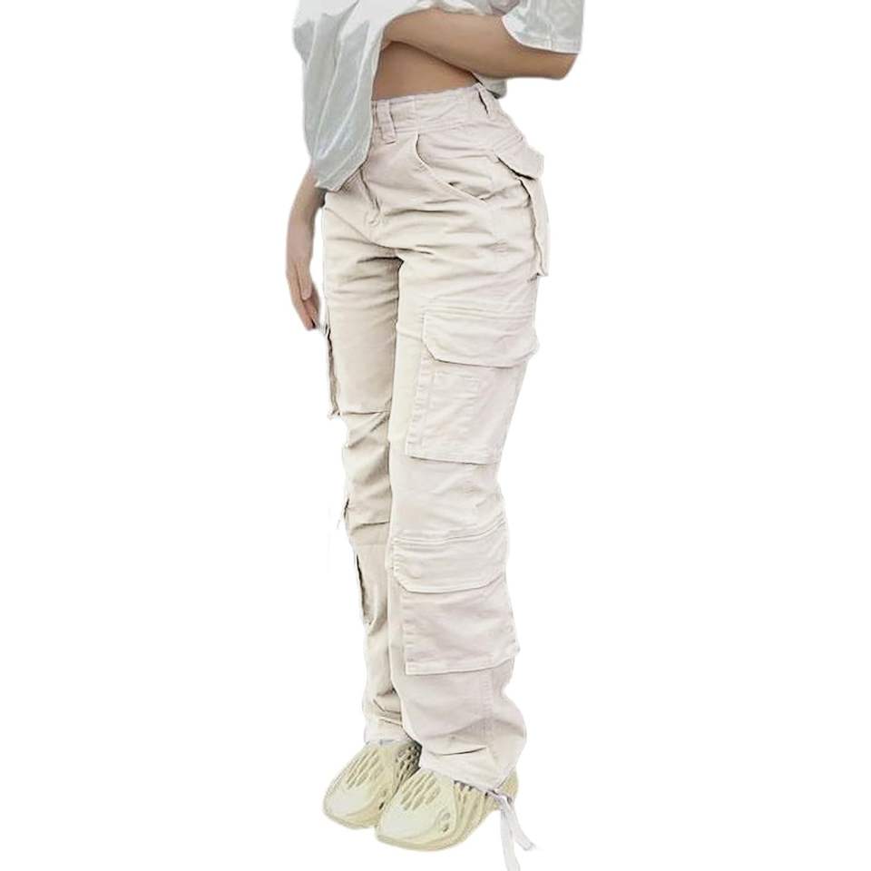 2025 A-Beige Women's High-Waisted Cargo Pants Baggy Y2K Straight Wide Leg with Pockets Streetwear Style