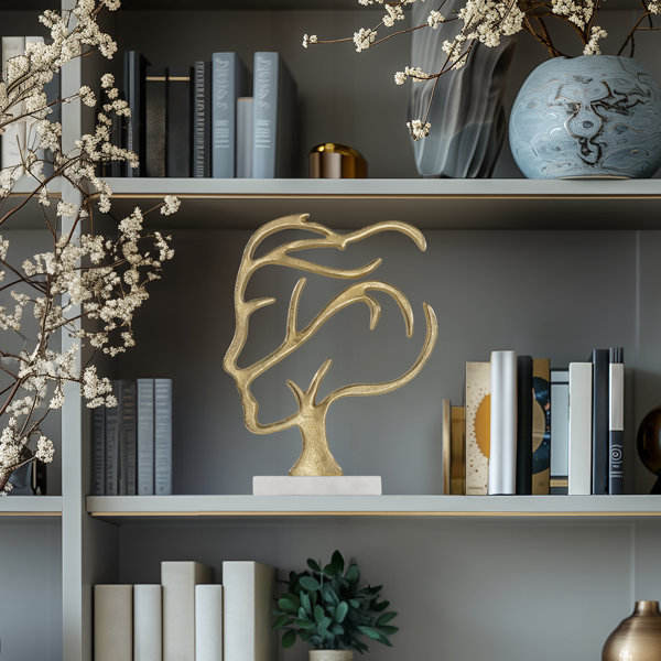2025 Abstract Gold Plated Metal Sculpture White Base Modern Decorative Tabletop Bookshelf Decor Items Hotel Decor Ornaments