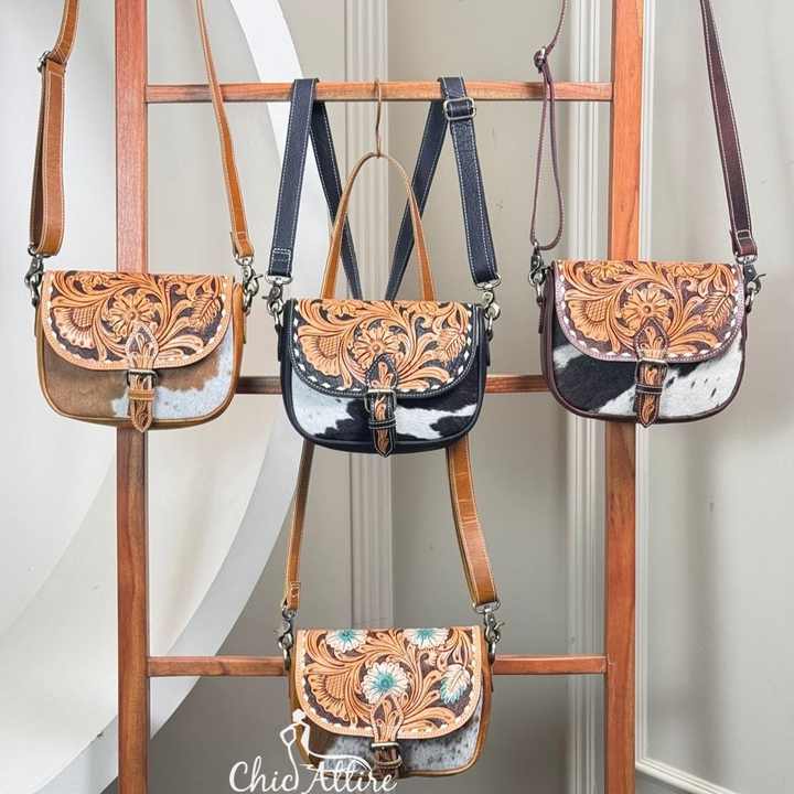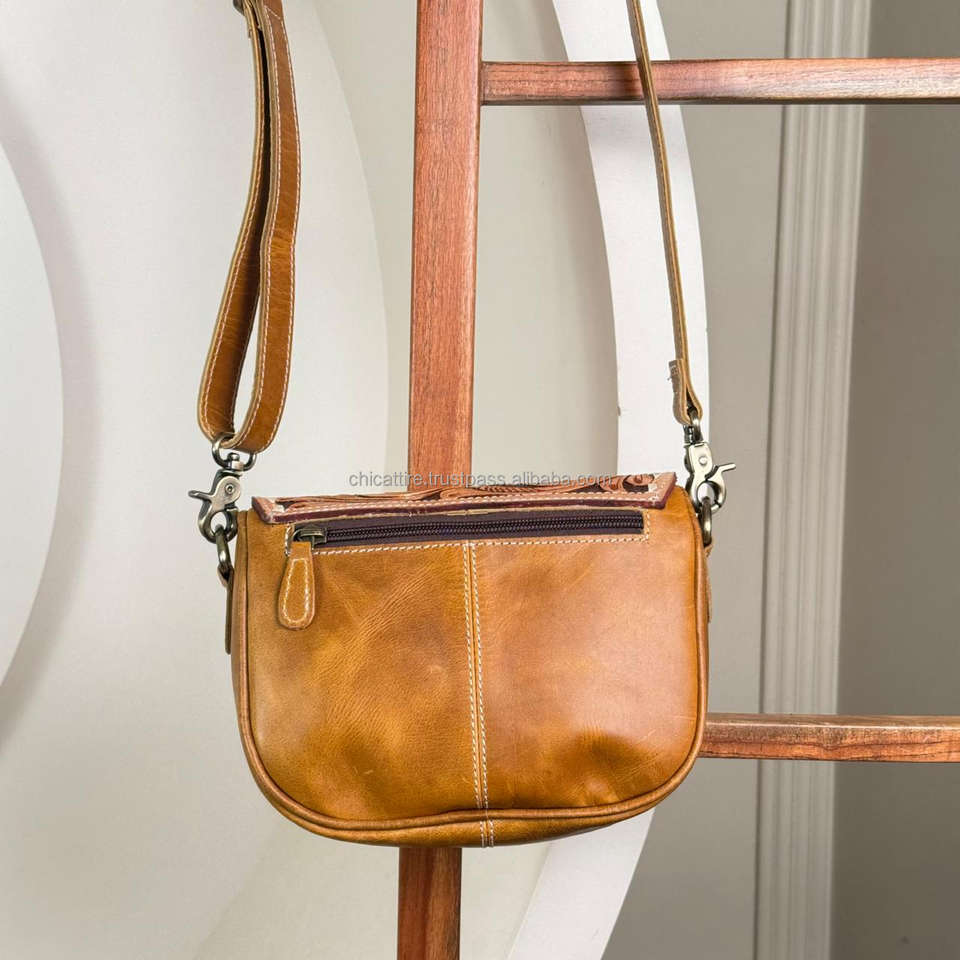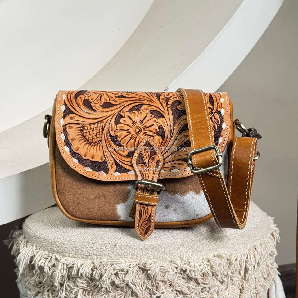 Product name:Hand Tooled Cowhide Leather Crossbody Purse