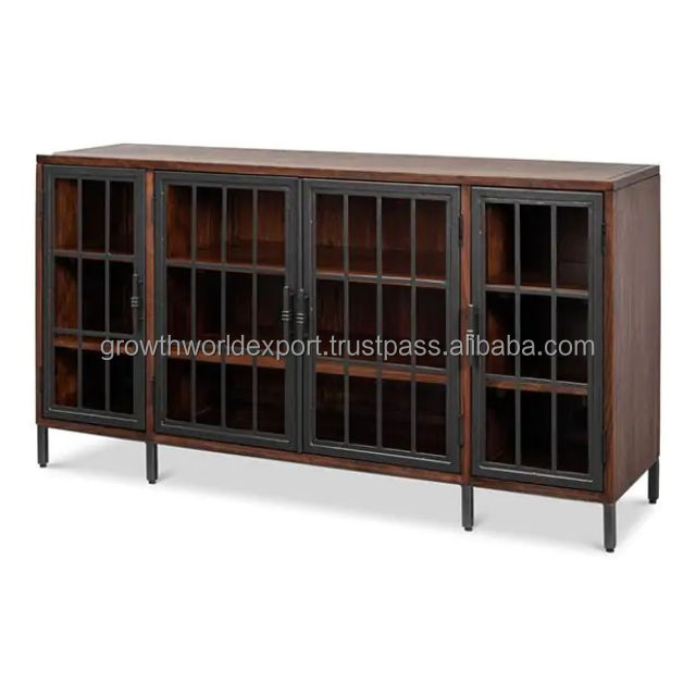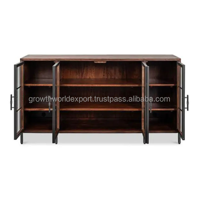 Modern Wooden Sideboard With 4 Iron Door And Storage