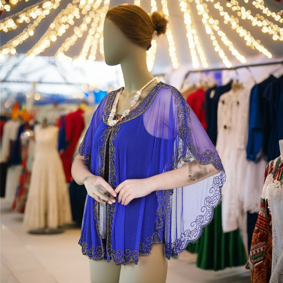2025 American Carnival Party Wear Poncho Top Adult Women Clothing T Shirt Blouse Shrug Soft Hand Embroidery Beach Evening Wear