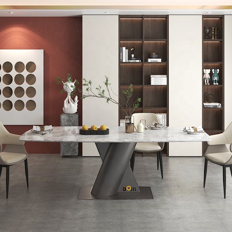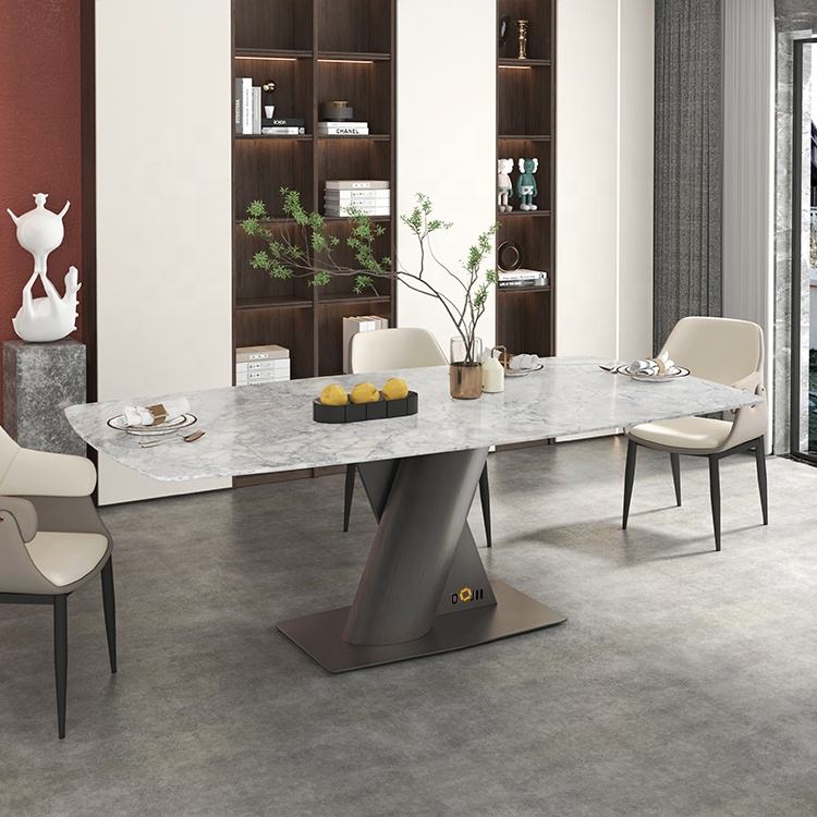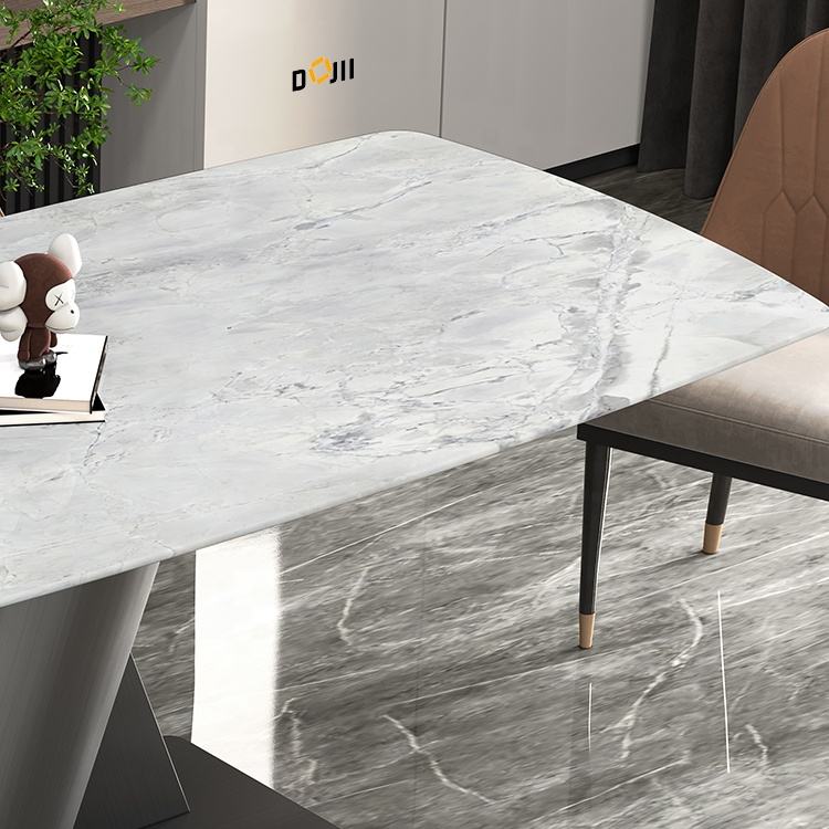 2025 American Style Modular Dining Table Set Nano White Family Marble Dining Table Space Saver Guangzhou Dining Table And Chairs