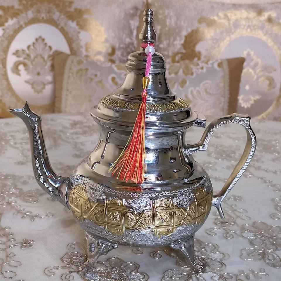 2025 Arrival Attractive Moroccan Design Brass Two-Tone Finished Eco-Friendly Food Grade Table Top Decor Teapot at Price