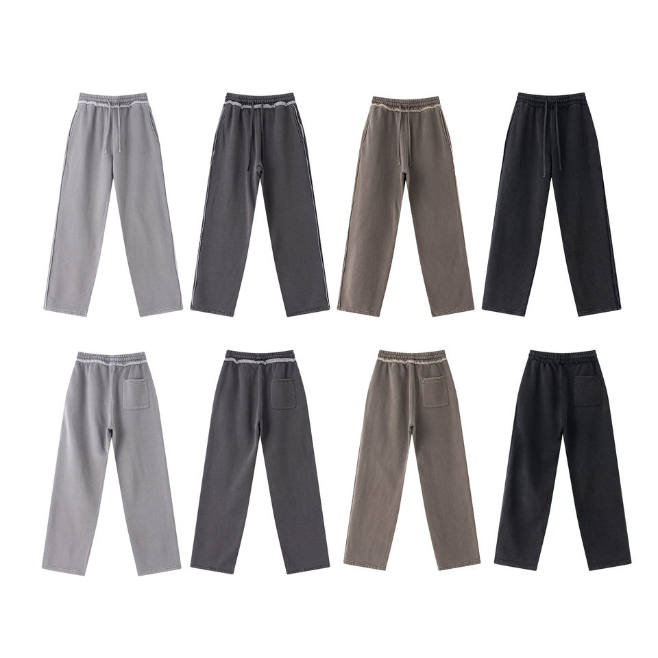 2025 Autumn American Retro Pants Heavyweight Trendy Brand, Distressed Raw-Edge Washed Fleece-Lined