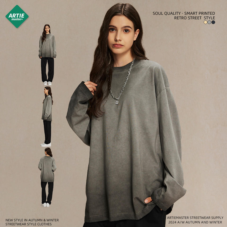 2025 Autumn Collection 275g Reverse Bottom Long-Sleeved Men's T-Shirt Street for Tide Brand Washed Water Dyed Ins Dirty
