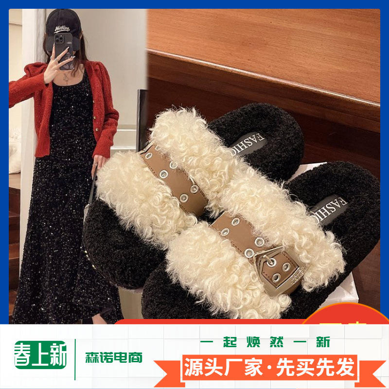 2025 Autumn New Fashion Women's Thick-Soled Fur for Slippers Platform Soft Lamb Wool Liner Stylish Ins Trendy Lazy Cotton Suede